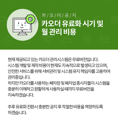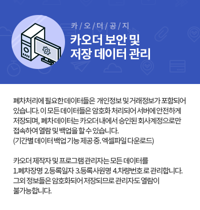 - 다. 2019년12월30일 기준 과거 1년간 카오더 에서 이용기록이 없을 시, 서비스 미이용자의 개인정보는 ‘정보통신망 이용촉진 및 정보보호등에 관한 법률 제29조’ 에 근거하여 이용자에게 사전통지하고 개인정보를 파기하거나 별도로 분리하여 저장 관리합니다. 단, 통신비밀보호법, 전자상거래 등에서의 소비자보호에 관한 법률 등의 관계법령의 규정에 의하여 보존할 필요가 있는 경우 관계법령에서 규정한 일정한 기간 동안 이용자 개인정보를 보관합니다.